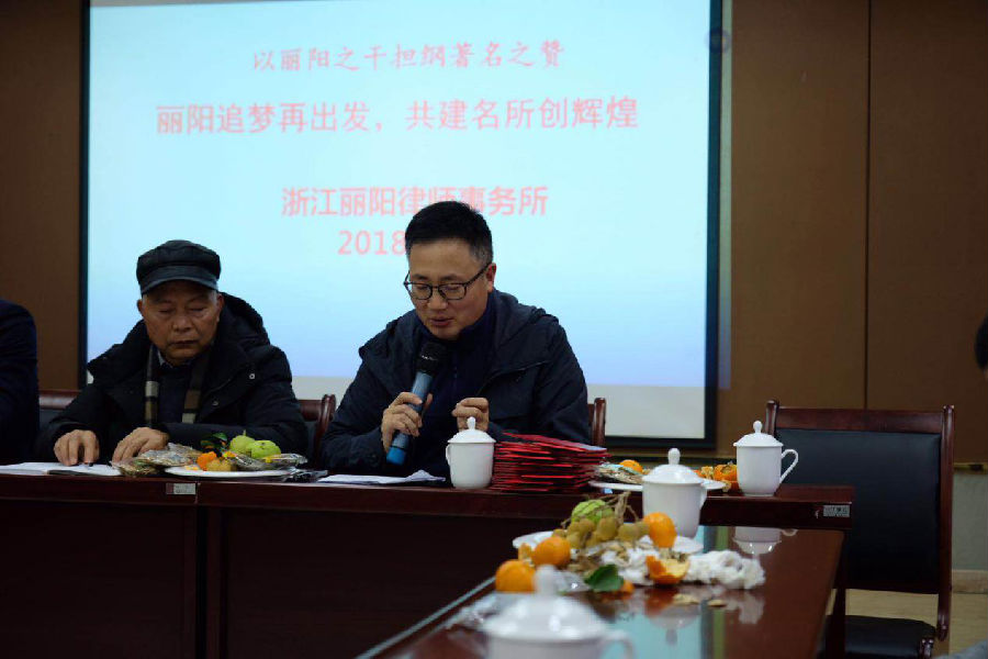 第五项议程,由丽阳所管委会主席吴洪江作最后总结。吴主席提出“促增长,保规模”的年度计划。要求以“诚信、专业、合作、共赢”为核心理念,以专业培养为着力点,建立年轻律师与老律师合作共赢机制。