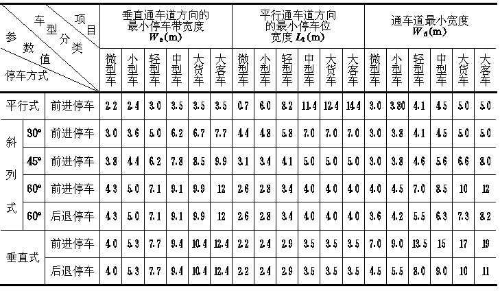 We——垂直于通车道的停车位尺寸Si——汽车间净距
