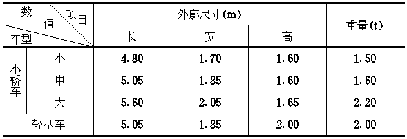 5.1.2 机械式汽车库中设计车型的外廓尺寸及重量可按表5.1.2规定采用。