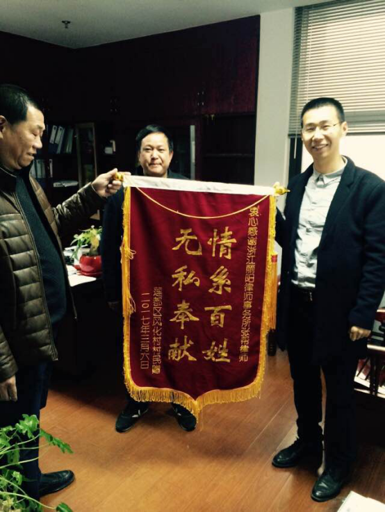 案件简要:丽水市强盾保安服务有限公司招聘祝吉平、陈伟军、傅国林、傅祖林、兰平儿、宋志连从事保安员,被派遣到第三人中国电信股份有限公司丽水分公司处工作。六保安员人与保安公司签订劳动合同分别为宋志连2011年1月1日、傅祖林2011年1月1日、傅国林2013年11月1日、祝吉平2014年1月1日、兰平儿2014年8月1日、陈伟军2015年3月1日。2016年3月7日,保安有限公司通知六位保安员进行保安公司转换推荐或另行安排工作。丽水市强盾保安服务有限公司支付了2016年3月份工资后,未安排六保安员工作,也未依法向六位保安员支付无工作期间的报酬。另,保安公司也未依法向其中五位保安员缴纳社保。六位保安员向丽水市法律援助中心申请法律援助,丽水市法律援助中心指派浙江丽阳律师事务所张帮律师为六位保安员办理相关劳动仲裁、法院诉讼案件代理。最终,六位保安人员得到保安公司待岗工资、经济补偿金以及补缴社保等补偿款。浙江丽阳律师事务所张帮律师在办理该案件不厌其烦、尽心尽责的办案态度,赢得六位保安信任和赞赏。事后,六位保安为了表示对援助中心以及代理律师张帮的感谢,特于2017年3月6日赠送“情系百姓、无私奉献”的锦旗。