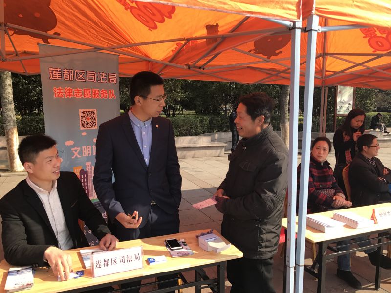 林志魏(实习)律师在解答群众法律问题