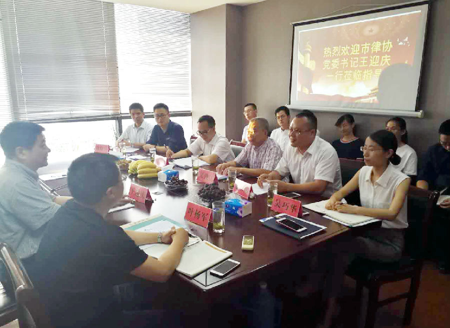 2017年7月13日上午,丽水市律协党委书记王迎庆和市司法局律管处长、市律协党委副书记叶杨军一行到浙江丽阳律师事务所指导工作。